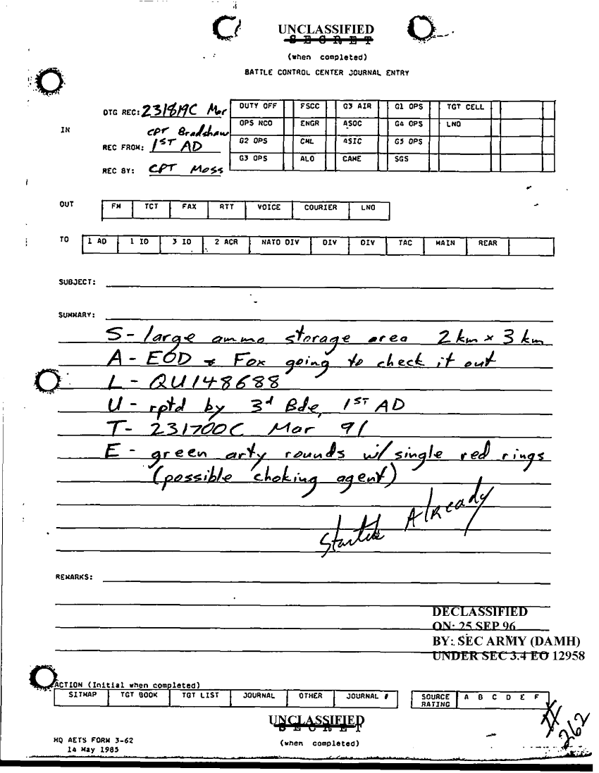 Document 1 f:/Week-24/BX000211/TASK FORCE DEMO LOG 14 MAR- 1 APR 91/battle control center journal entry:10189613575864
