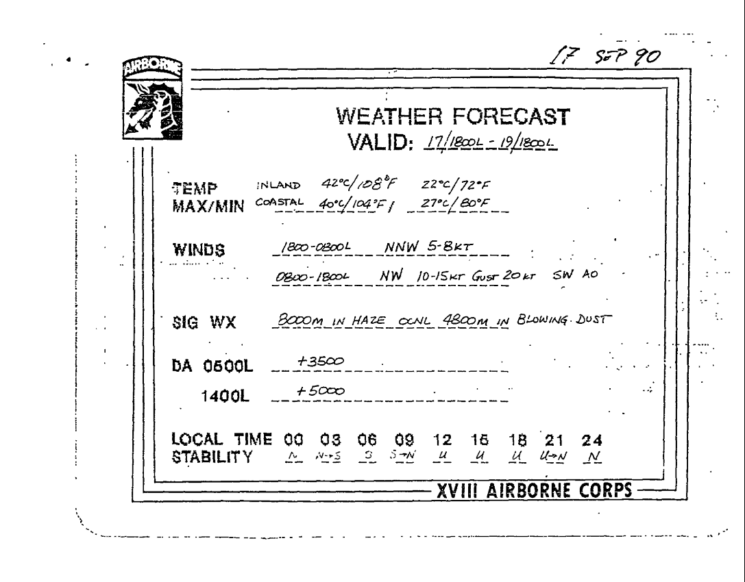 Subject = DAILY BRIEFING XVIII CORPS 17 SEP 90
