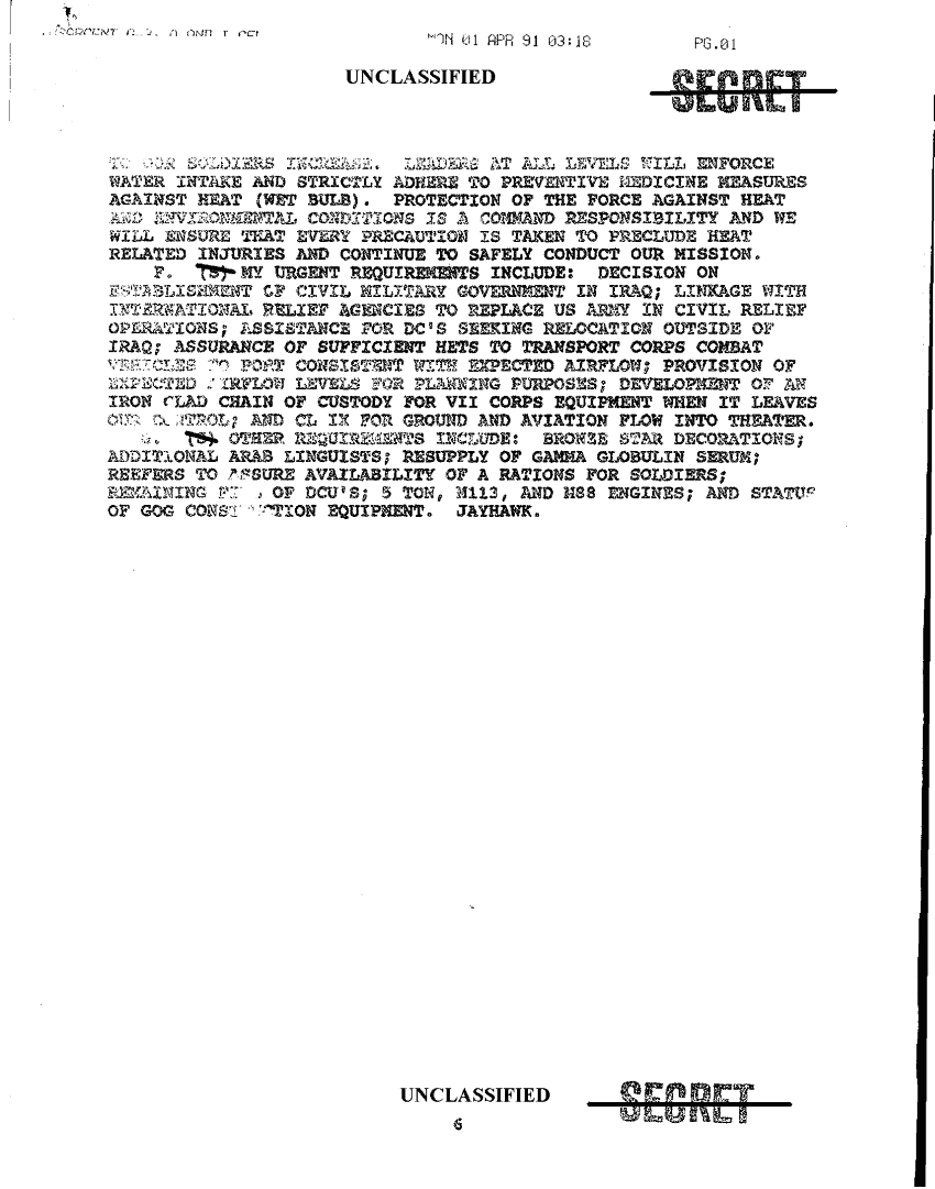Subject = VII CORPS SITREP 1 APR 91