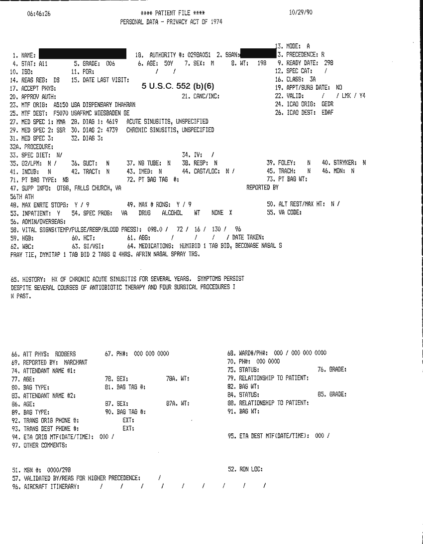 Document 46 f:/Week-32/BX000482/MEDSTAT - SITREPS OCT 90 3 OF 4/patient file 29 oct 90:10019616503417