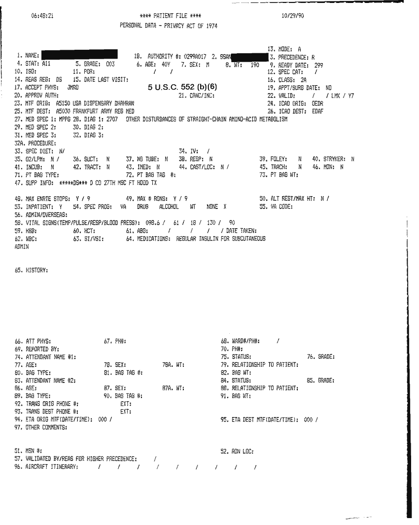 Document 46 f:/Week-32/BX000482/MEDSTAT - SITREPS OCT 90 3 OF 4/patient file 29 oct 90:10019616503417