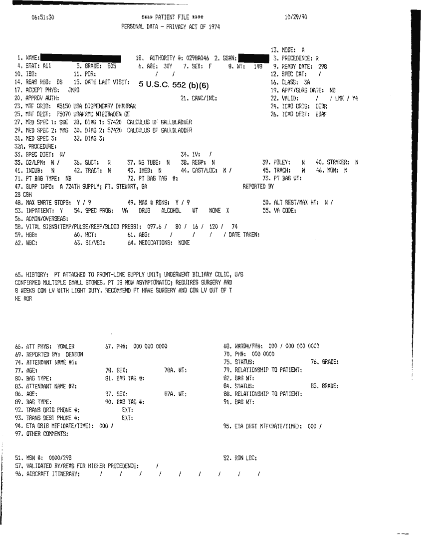 Document 46 f:/Week-32/BX000482/MEDSTAT - SITREPS OCT 90 3 OF 4/patient file 29 oct 90:10019616503417