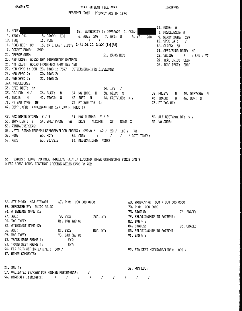 Document 46 f:/Week-32/BX000482/MEDSTAT - SITREPS OCT 90 3 OF 4/patient file 29 oct 90:10019616503417