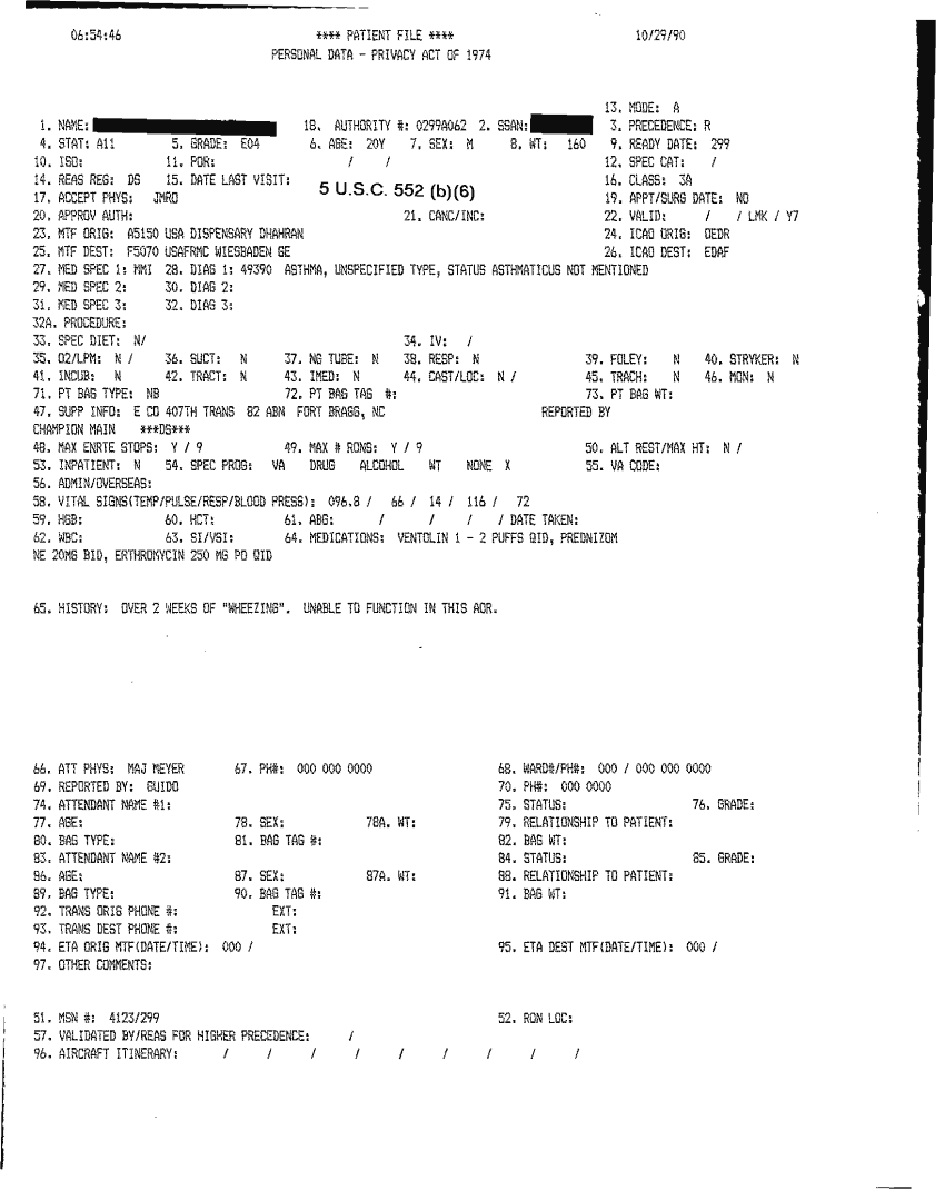 Document 46 f:/Week-32/BX000482/MEDSTAT - SITREPS OCT 90 3 OF 4/patient file 29 oct 90:10019616503417