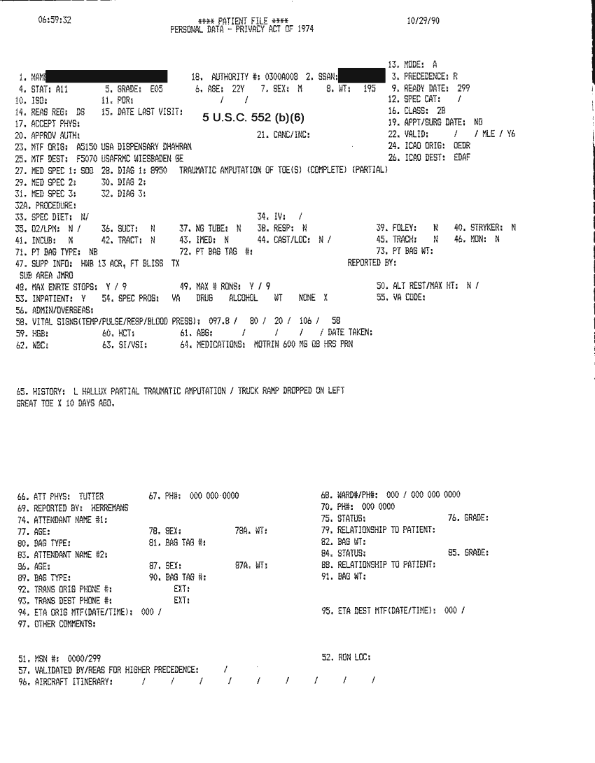 Document 46 f:/Week-32/BX000482/MEDSTAT - SITREPS OCT 90 3 OF 4/patient file 29 oct 90:10019616503417