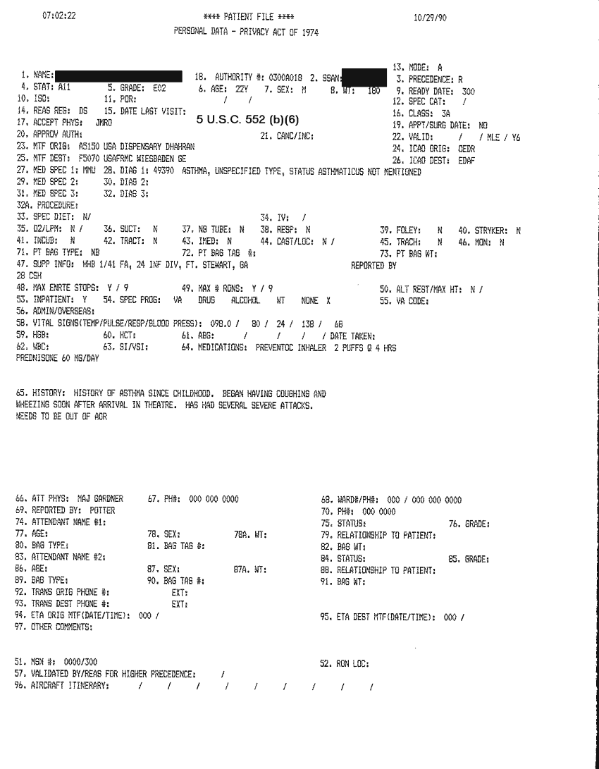 Document 46 f:/Week-32/BX000482/MEDSTAT - SITREPS OCT 90 3 OF 4/patient file 29 oct 90:10019616503417