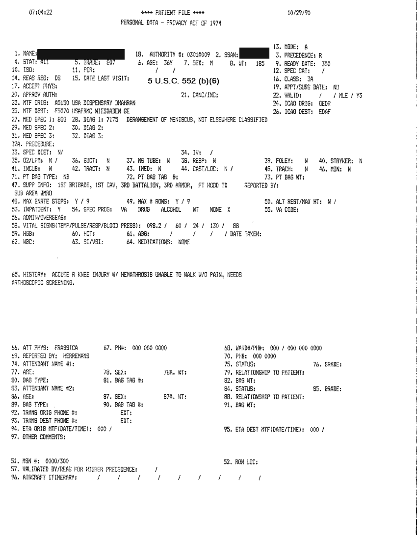 Document 46 f:/Week-32/BX000482/MEDSTAT - SITREPS OCT 90 3 OF 4/patient file 29 oct 90:10019616503417
