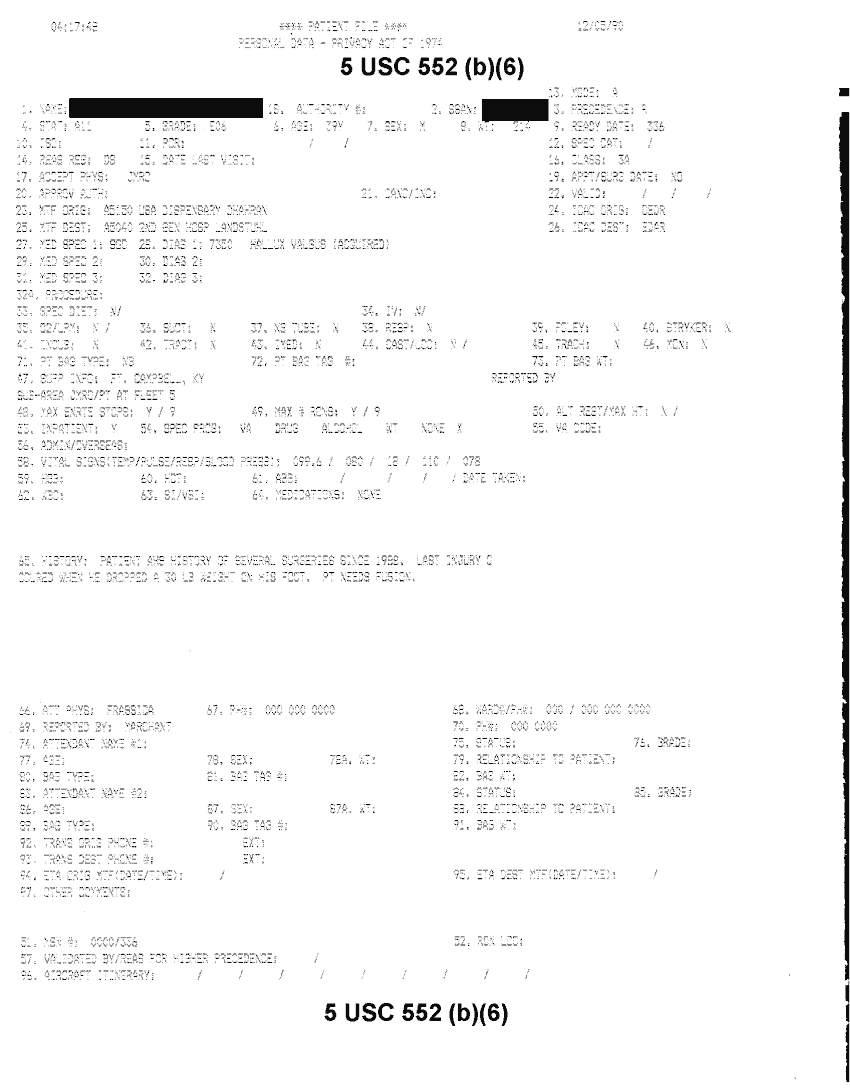 Document 48 f:/Week-32/BX000482/MEDSTAT - SITREPS DEC 90 1 OF 6/patient file personal data:10019616510479