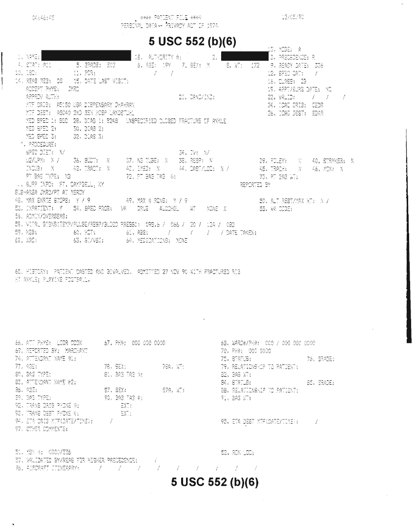 Document 48 f:/Week-32/BX000482/MEDSTAT - SITREPS DEC 90 1 OF 6/patient file personal data:10019616510479