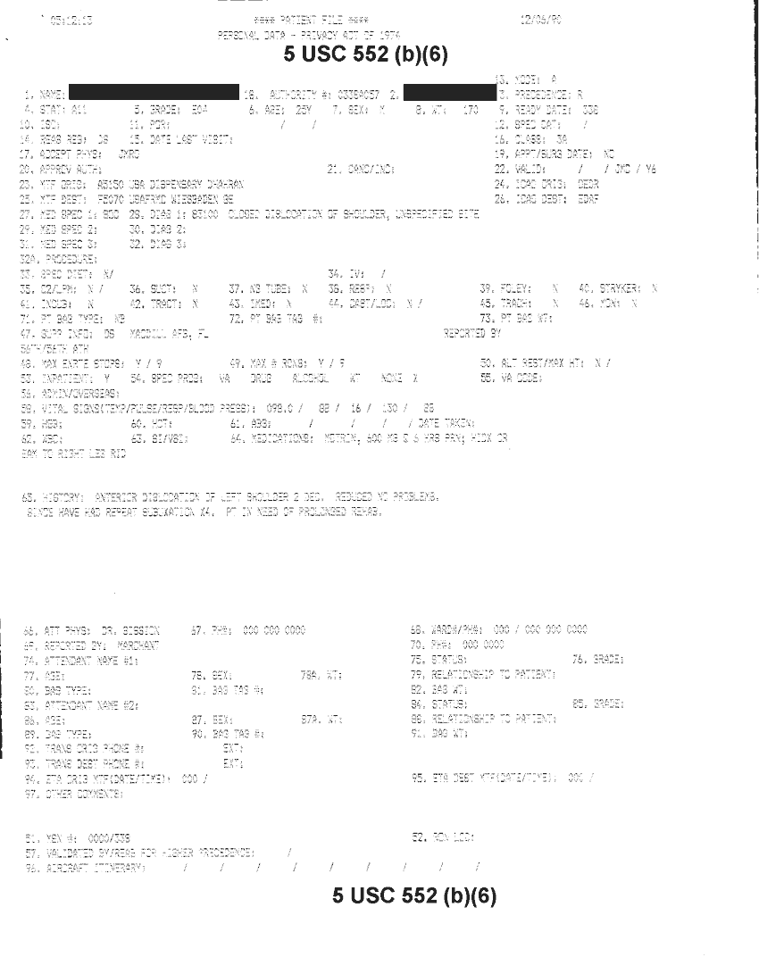 Document 18 f:/Week-32/BX000482/MEDSTAT - SITREPS DEC 90 1 OF 6/patient file personal data:10019616510480