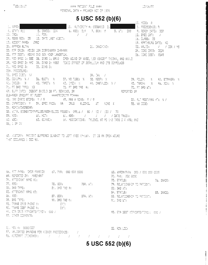Document 18 f:/Week-32/BX000482/MEDSTAT - SITREPS DEC 90 1 OF 6/patient file personal data:10019616510480
