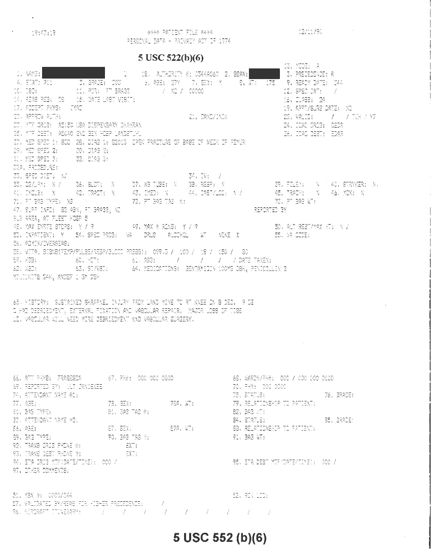 Document 20 f:/Week-32/BX000482/MEDSTAT - SITREPS DEC 90 1 OF 6/patient file personal data:10019616510581