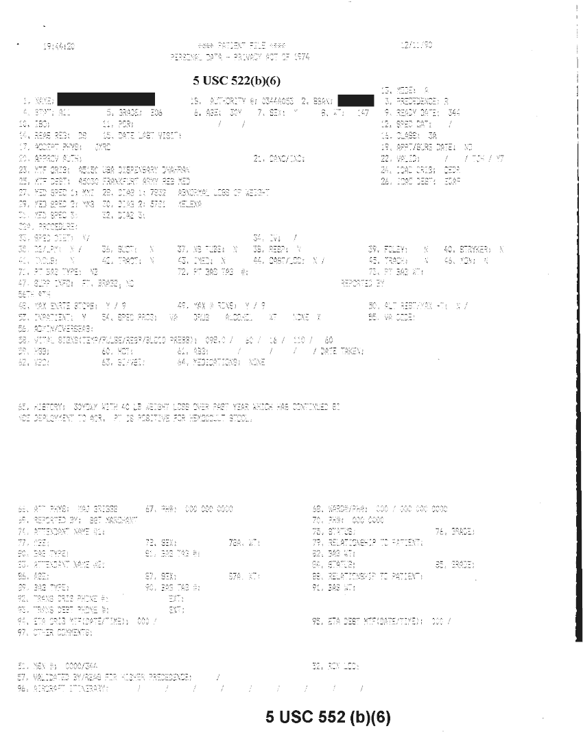 Document 20 f:/Week-32/BX000482/MEDSTAT - SITREPS DEC 90 1 OF 6/patient file personal data:10019616510581