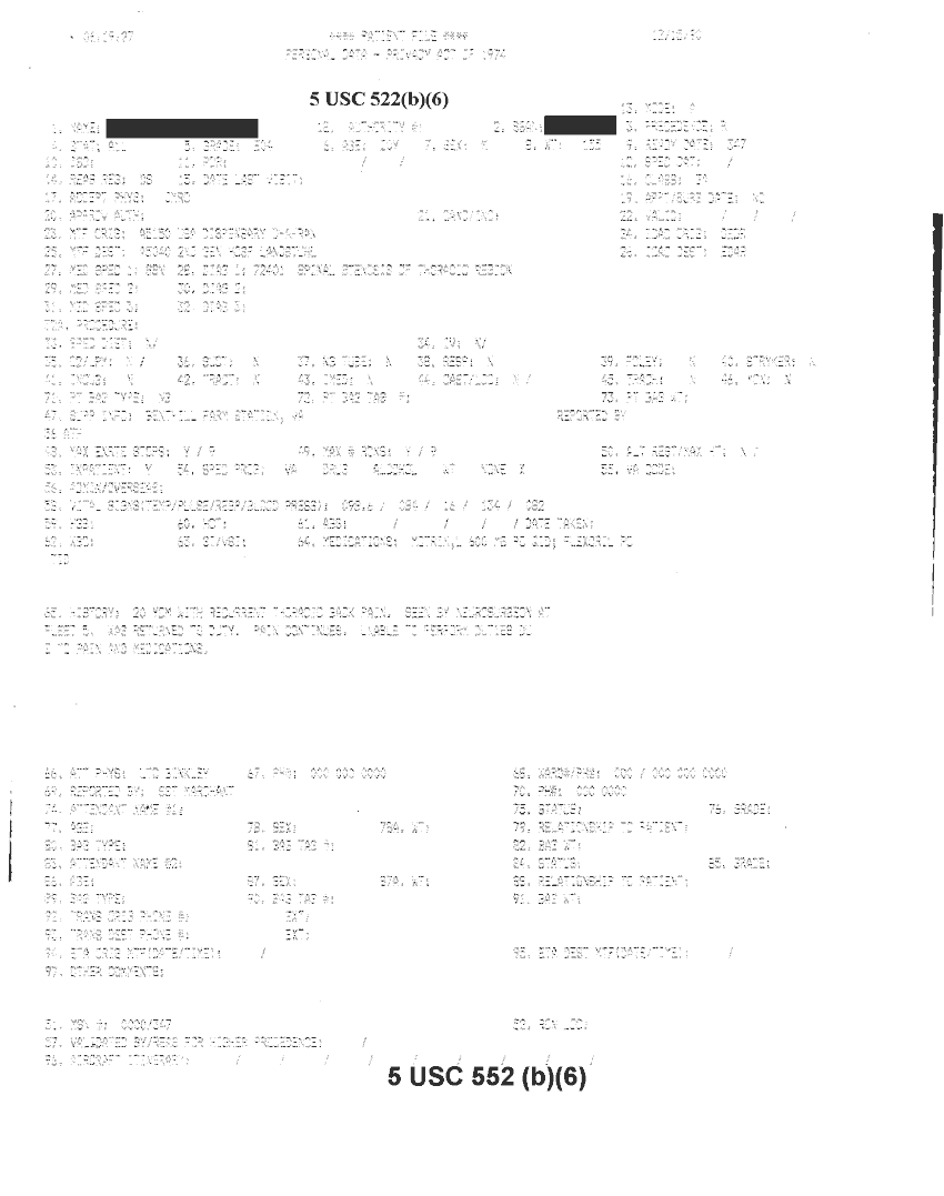 Document 6 f:/Week-32/BX000482/MEDSTAT - SITREPS DEC 90 1 OF 6/patient file personal data:10019616510582