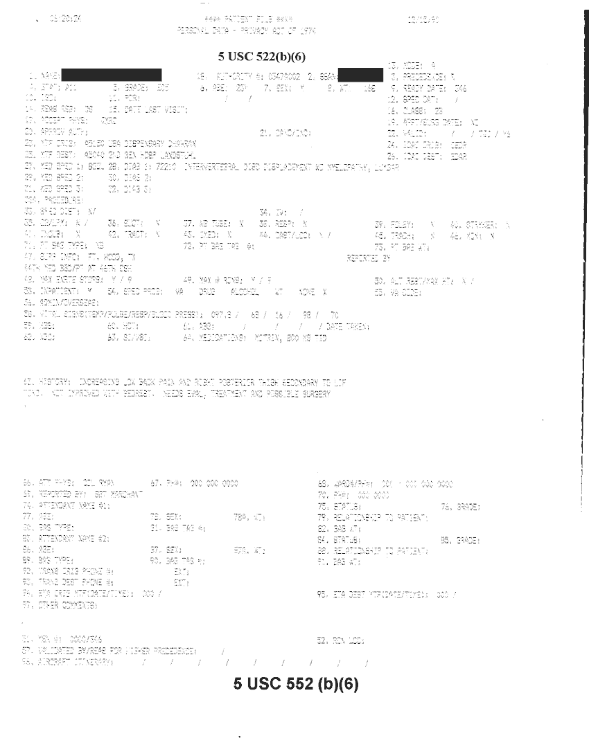 Document 6 f:/Week-32/BX000482/MEDSTAT - SITREPS DEC 90 1 OF 6/patient file personal data:10019616510582