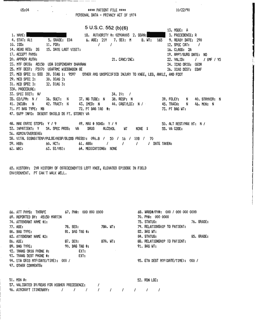 Document 41 f:/Week-32/BX000482/MEDSTAT - SITREPS OCT 90 3 OF 4/patient file:10019616503518