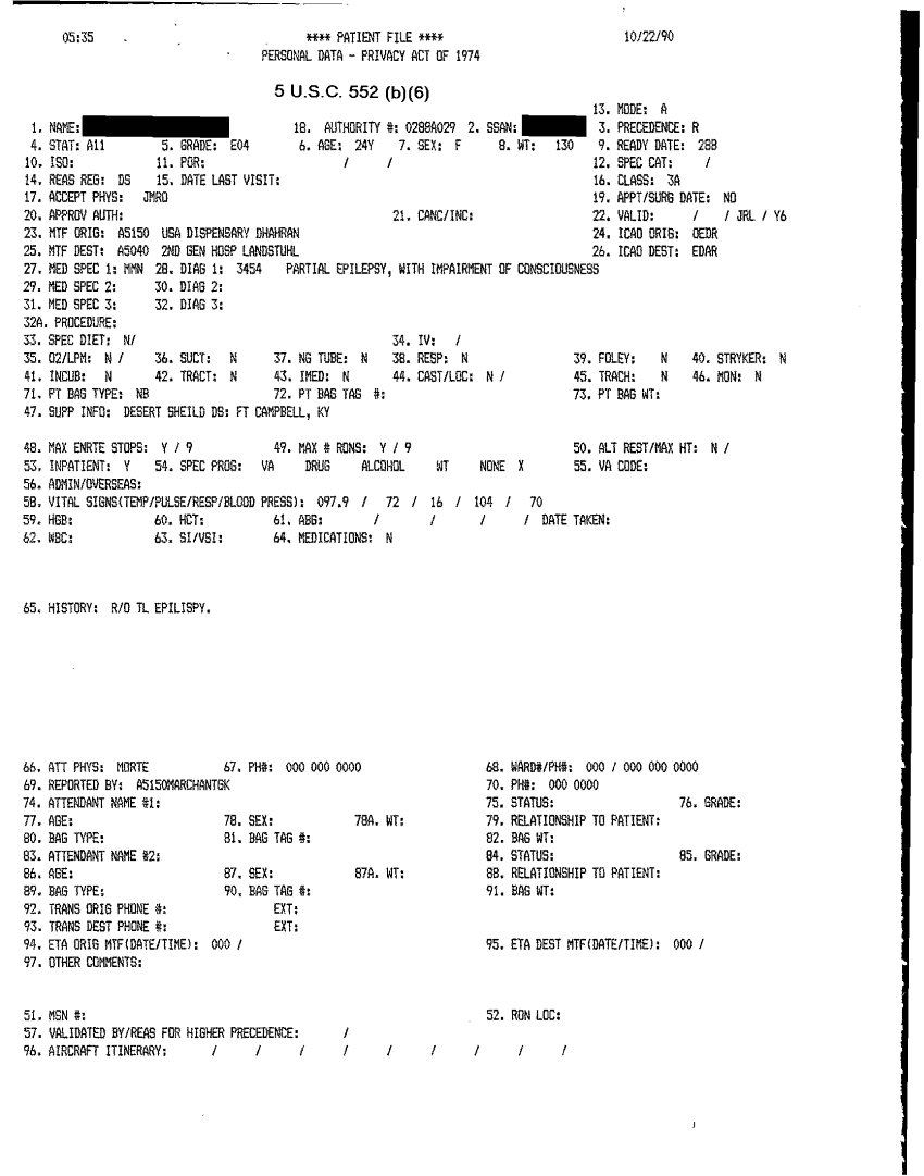 Document 41 f:/Week-32/BX000482/MEDSTAT - SITREPS OCT 90 3 OF 4/patient file:10019616503518