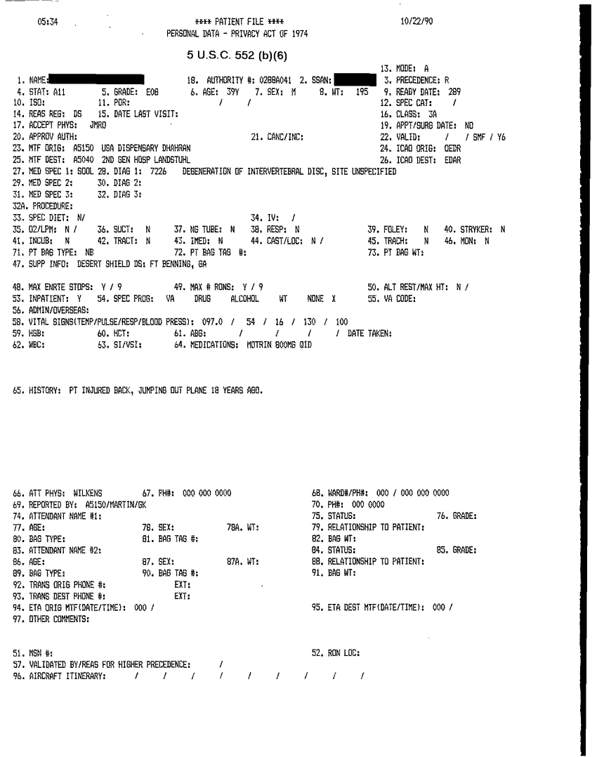 Document 41 f:/Week-32/BX000482/MEDSTAT - SITREPS OCT 90 3 OF 4/patient file:10019616503518