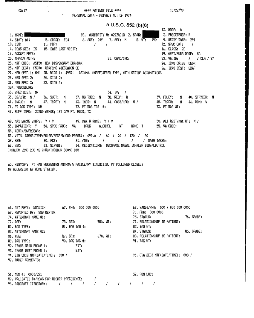 Document 41 f:/Week-32/BX000482/MEDSTAT - SITREPS OCT 90 3 OF 4/patient file:10019616503518