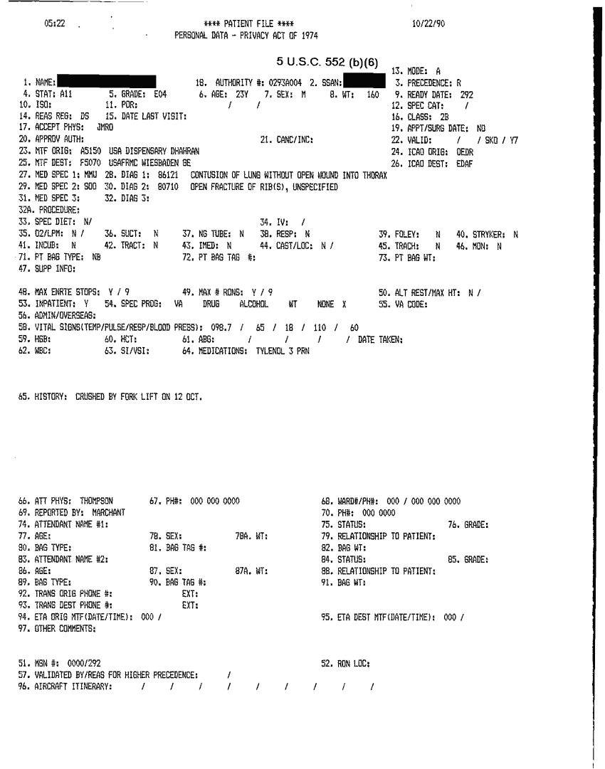 Document 41 f:/Week-32/BX000482/MEDSTAT - SITREPS OCT 90 3 OF 4/patient file:10019616503518