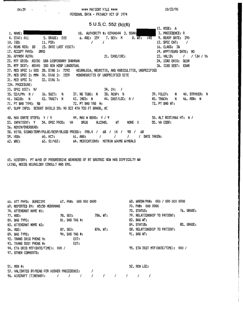 Document 41 f:/Week-32/BX000482/MEDSTAT - SITREPS OCT 90 3 OF 4/patient file:10019616503518