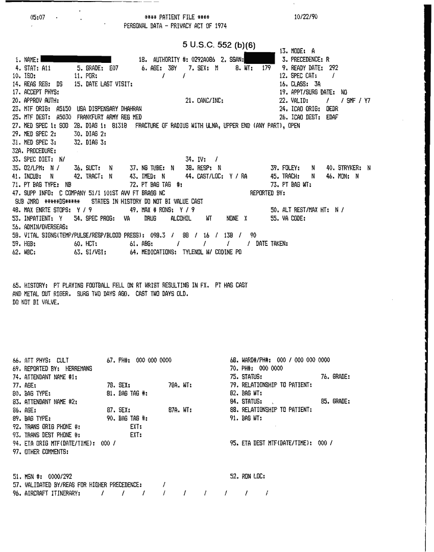 Document 41 f:/Week-32/BX000482/MEDSTAT - SITREPS OCT 90 3 OF 4/patient file:10019616503518