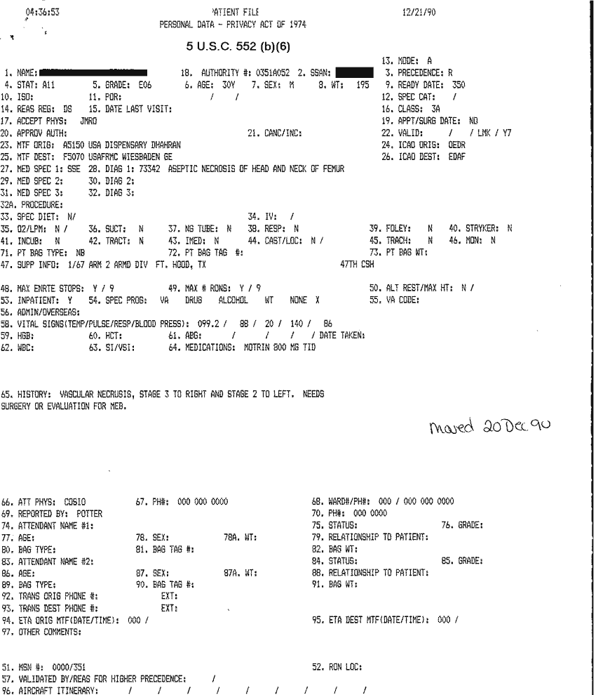 Document 26 f:/Week-32/BX000482/MEDSTAT - SITREPS DEC 90 2 OF 6/patient files 21 dec 90:10019616503519