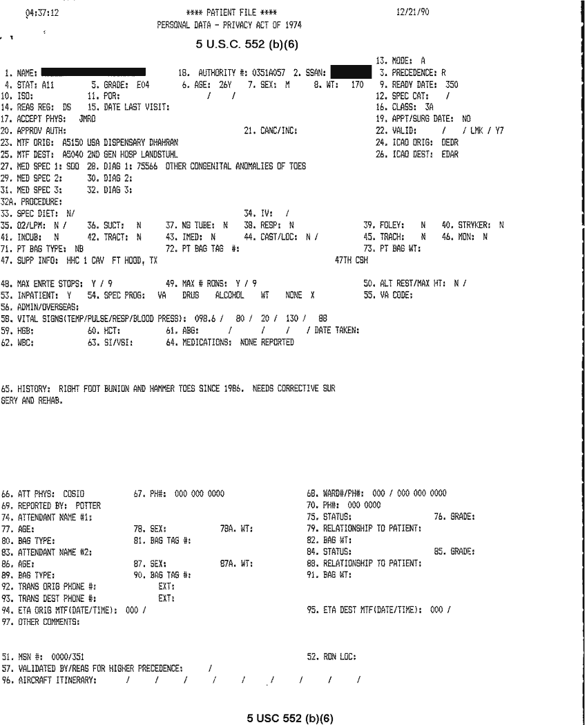 Document 26 f:/Week-32/BX000482/MEDSTAT - SITREPS DEC 90 2 OF 6/patient files 21 dec 90:10019616503519