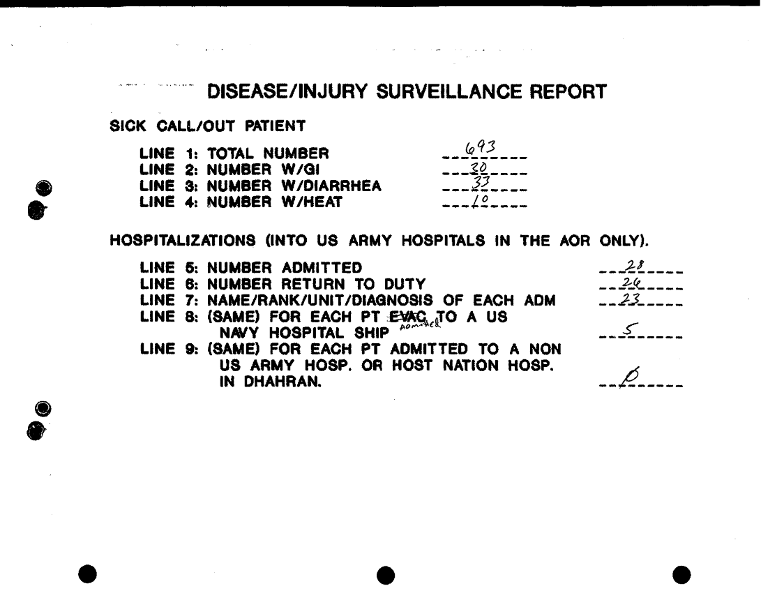 Document 16 f:/Week-32/BX000482/MEDSTAT - SITREPS OCT 90 2 OF 4/disease injury surveillance report:100196165115101