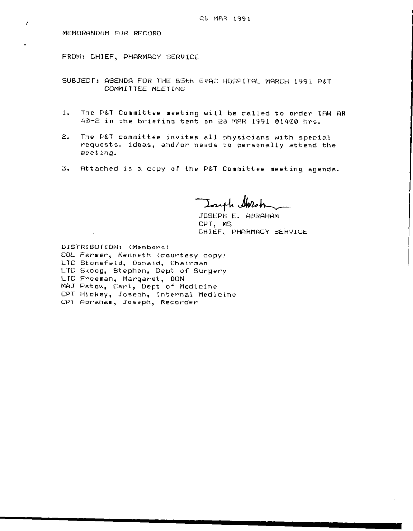 Document 3 f:/Week-34/BX005157/85TH EVAC HOSPITAL -PHARMACY-FORMULARY -PATIENTS/pharmacy p and t committee meeting agenda 26 mar:100196165119110