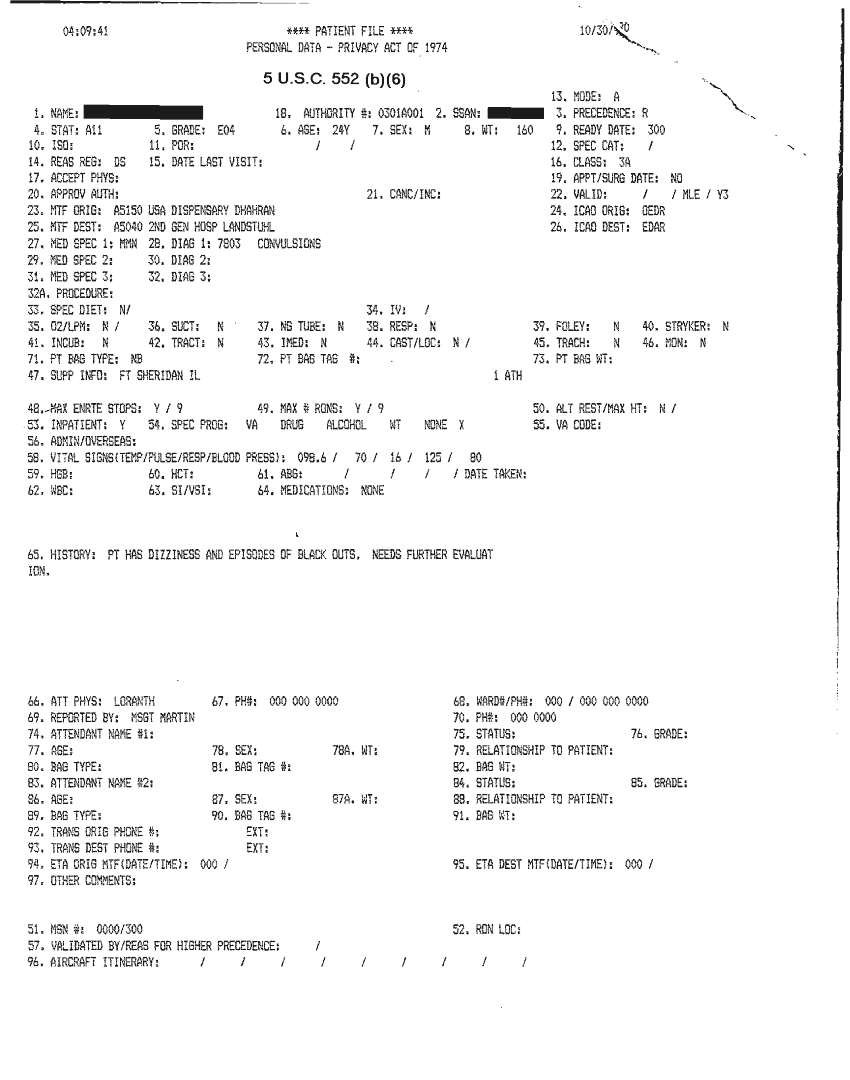 Document 31 f:/Week-32/BX000482/MEDSTAT - SITREPS OCT 90 3 OF 4/patient file:10019616503620