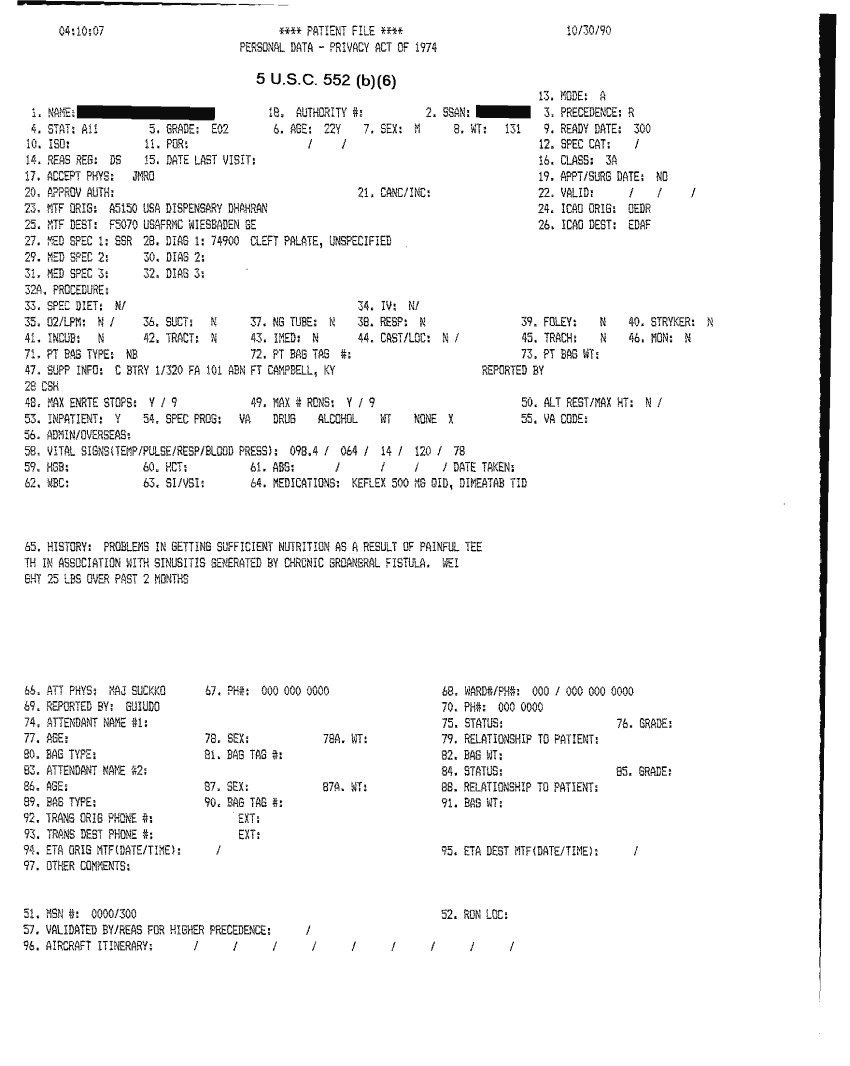 Document 31 f:/Week-32/BX000482/MEDSTAT - SITREPS OCT 90 3 OF 4/patient file:10019616503620
