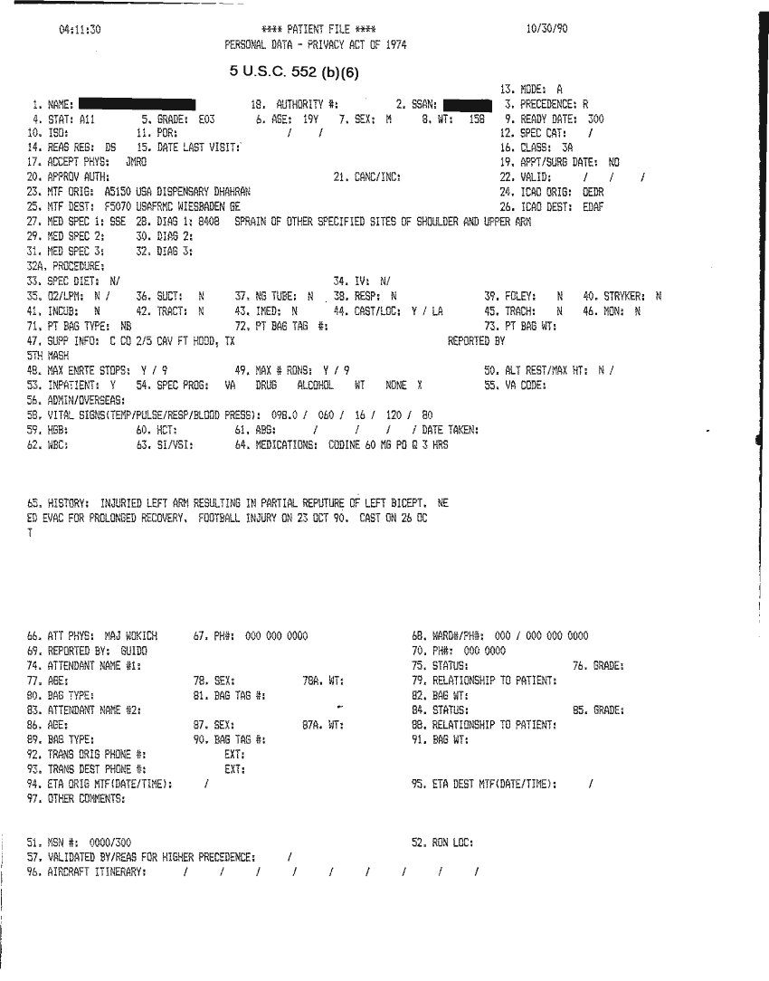 Document 31 f:/Week-32/BX000482/MEDSTAT - SITREPS OCT 90 3 OF 4/patient file:10019616503620