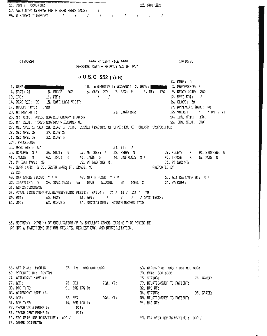 Document 31 f:/Week-32/BX000482/MEDSTAT - SITREPS OCT 90 3 OF 4/patient file:10019616503620