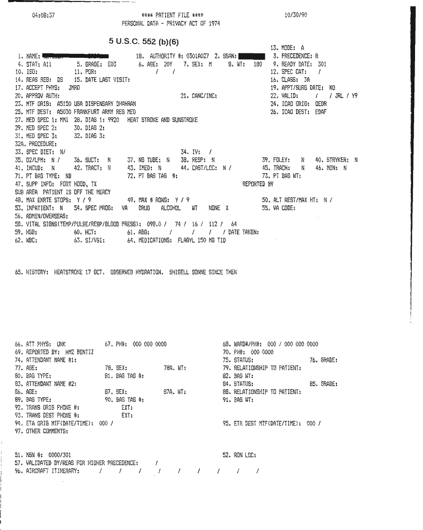 Document 31 f:/Week-32/BX000482/MEDSTAT - SITREPS OCT 90 3 OF 4/patient file:10019616503620