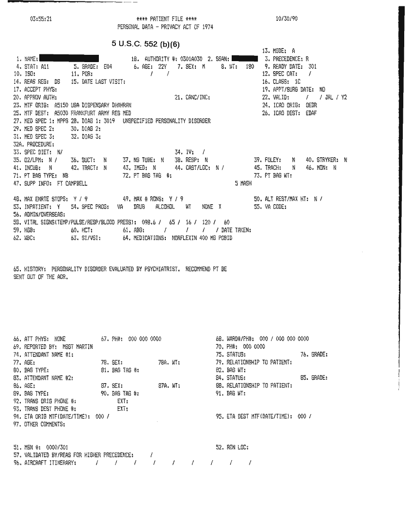 Document 31 f:/Week-32/BX000482/MEDSTAT - SITREPS OCT 90 3 OF 4/patient file:10019616503620