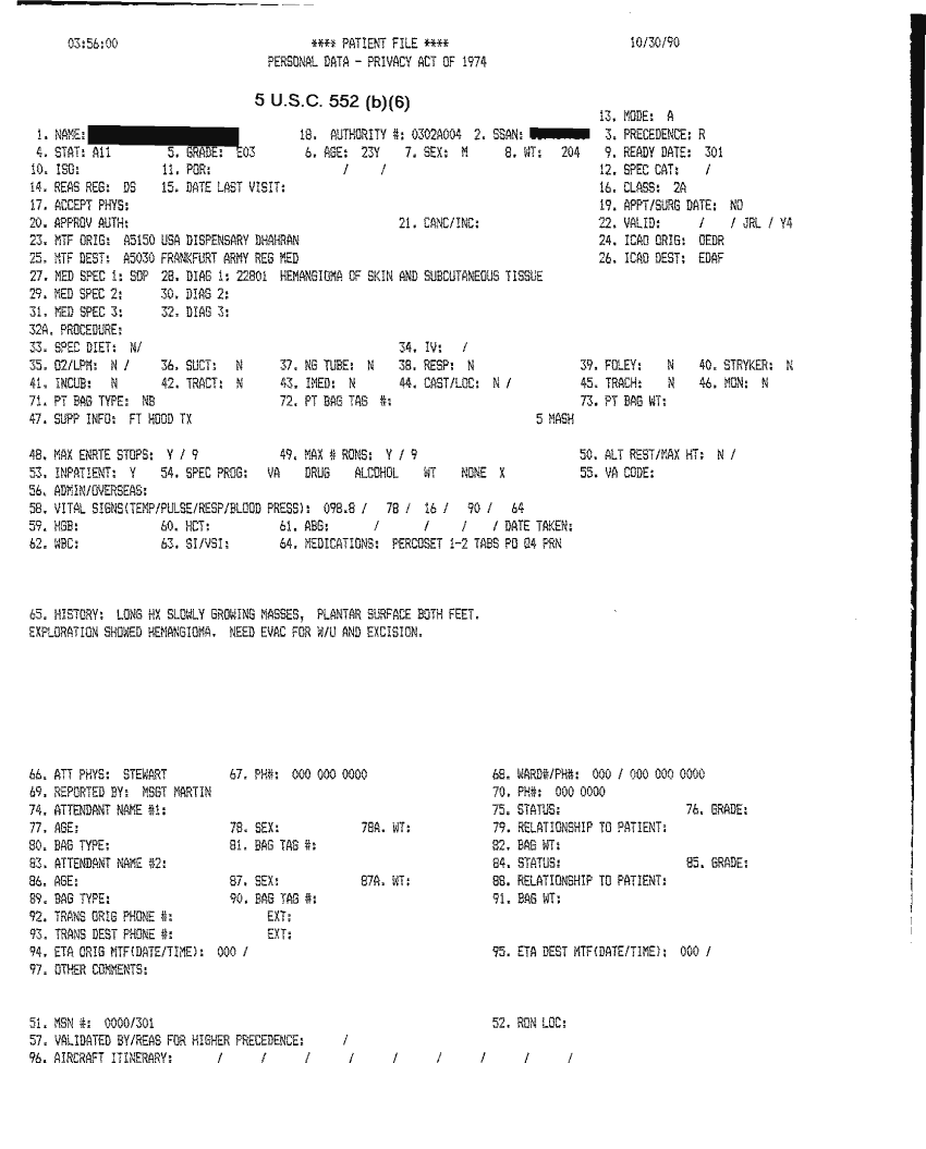 Document 31 f:/Week-32/BX000482/MEDSTAT - SITREPS OCT 90 3 OF 4/patient file:10019616503620