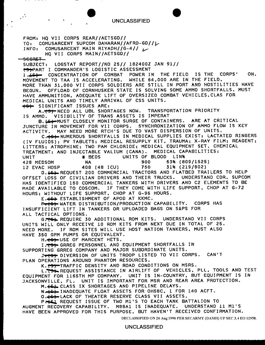 Document 6 f:/Week-32/BX000484/COMMAND REPORTS LNO TEAMS DELTA AND FOUR 20 - 26 JAN 91/logstat 25 vii corps 18 jan 91:10019616504744