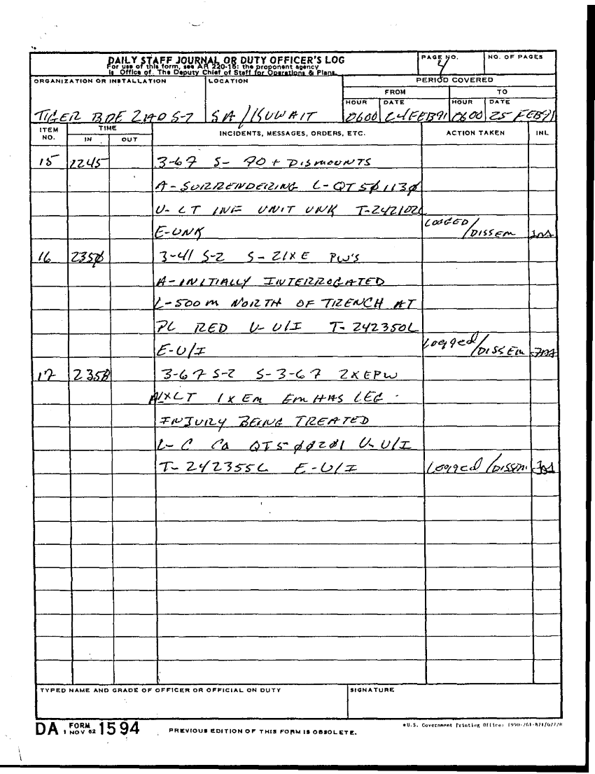 Document 22 f:/Week-28/BX001921/DAILY STAFF JOURNALS 25-28 FEB 91/daily staff journal 24feb91:100196165117107