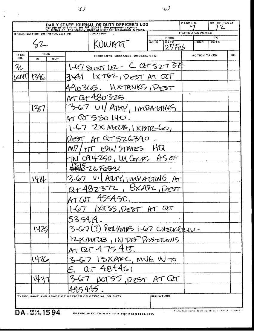 Document 22 f:/Week-28/BX001921/DAILY STAFF JOURNALS 25-28 FEB 91/daily staff journal 24feb91:100196165117107