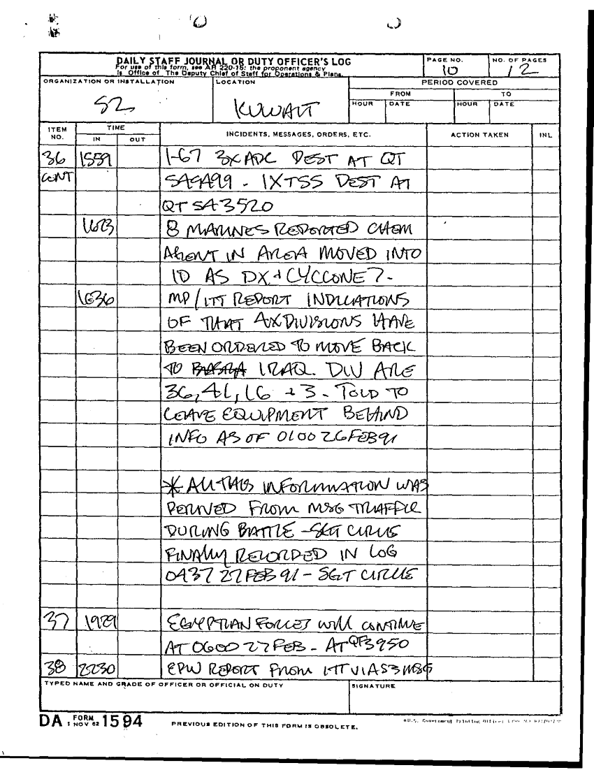 Document 22 f:/Week-28/BX001921/DAILY STAFF JOURNALS 25-28 FEB 91/daily staff journal 24feb91:100196165117107