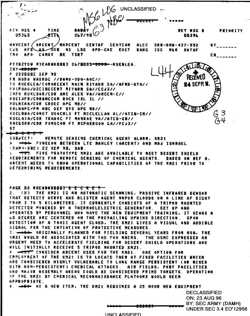 Document 2 f:/Week-28/BX000409/TACTICAL OPERATIONS CENTER LOGS - MSG FILE LOGS 23-24 SEP 90/remote sensing chemical agent alarm:10019616504641