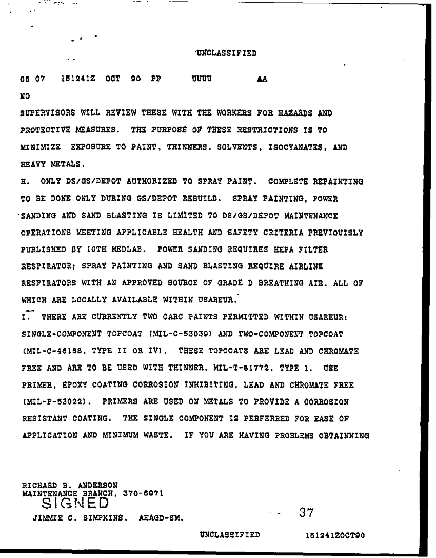 Document 22 f:/Week-25/BX000218/525-2B-9 PORT OPNS CARC PAINTING POLICY/vii corps carc painting policy:10019616504437