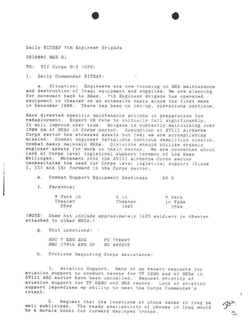 Document 87 f:/Week-24/BX000213/SITUATION REPORTS 7TH ENG BDE 22 DEC 90- 10 APR 91/daily commander sitrep:10019616504540