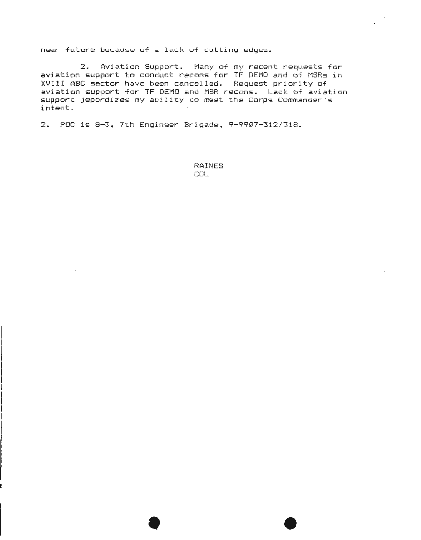 Document 87 f:/Week-24/BX000213/SITUATION REPORTS 7TH ENG BDE 22 DEC 90- 10 APR 91/daily commander sitrep:10019616504540