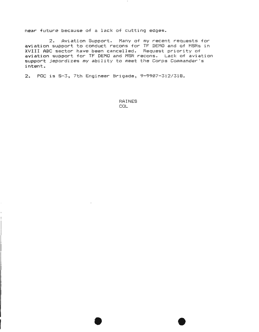 Document 87 f:/Week-24/BX000213/SITUATION REPORTS 7TH ENG BDE 22 DEC 90- 10 APR 91/daily commander sitrep:10019616504540