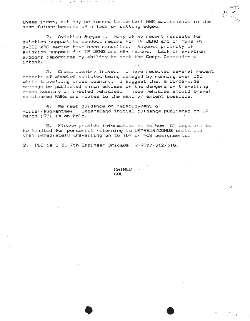 Document 87 f:/Week-24/BX000213/SITUATION REPORTS 7TH ENG BDE 22 DEC 90- 10 APR 91/daily commander sitrep:10019616504540