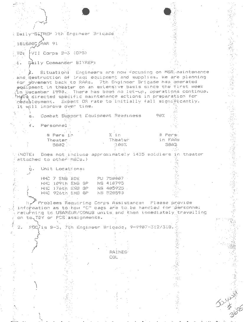 Document 87 f:/Week-24/BX000213/SITUATION REPORTS 7TH ENG BDE 22 DEC 90- 10 APR 91/daily commander sitrep:10019616504540