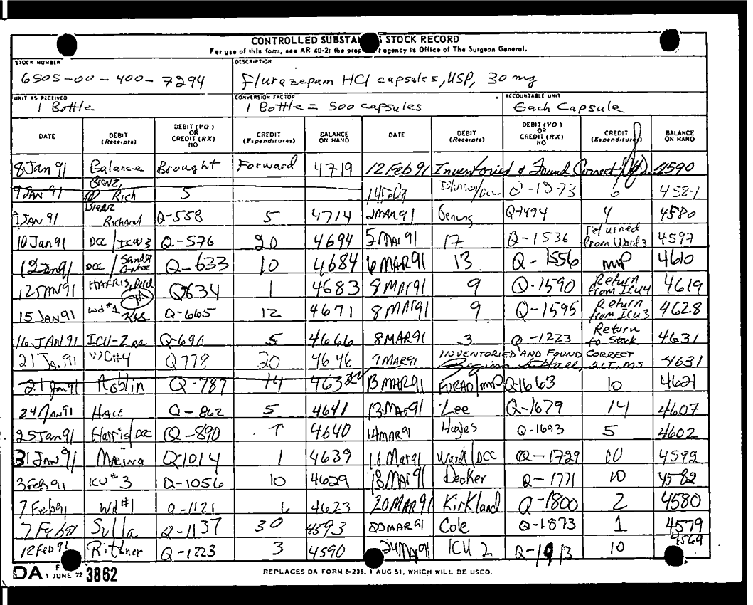 Document 2 f:/Week-35/BX005161/CONTROLLED SUBSTANCE STOCK RECORDS/flurazepam:100196165122116
