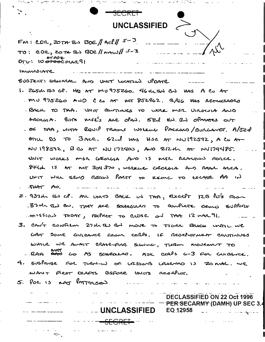 Document 3 f:/Week-18/BX000057/DUTY LOG MAIN CP MESSAGES 20 ENGINEER BDE 10 MAR 91/general and unit location update:10259613090427